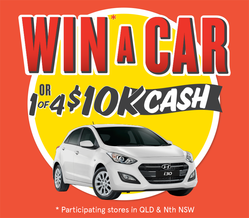 Prizes Include: 1 Hyundai i30 Active Car & 1 of 4 x $10,000 Cash